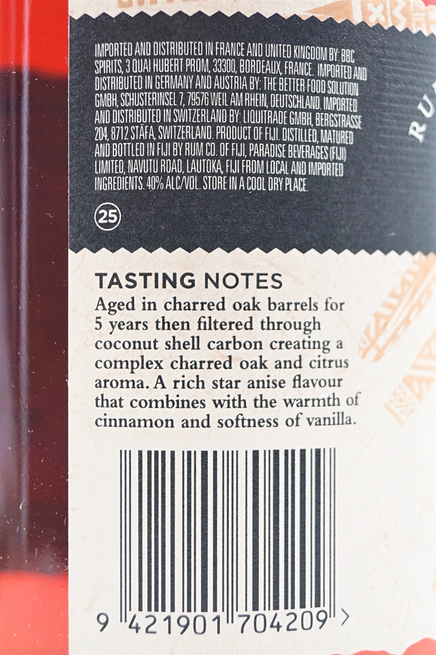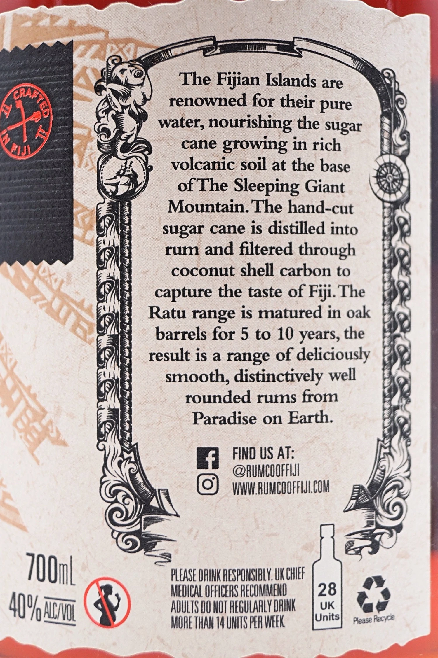 Gereift in speziell ausgewählten Ex-Bourbon-Eichenfässern im perfekten tropischen Klima der Fidschi-Inseln.