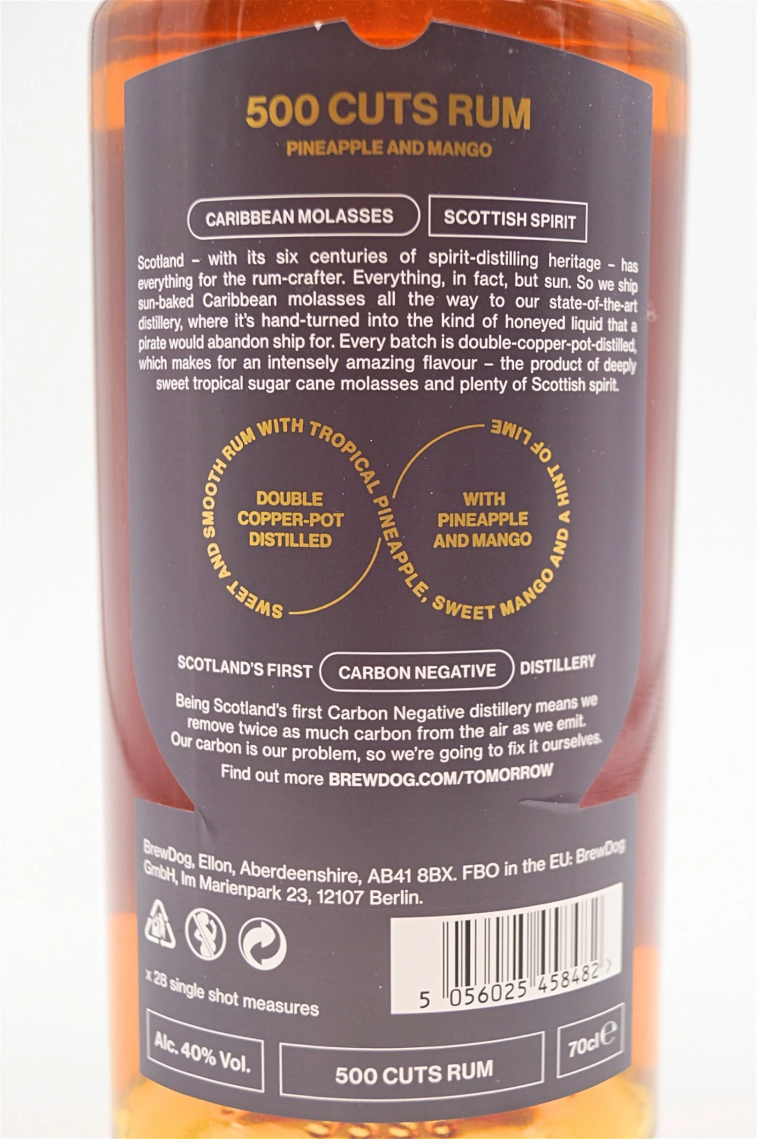 Five Hundred Cuts ist voller Würze und Lebensfreude. Weißer Rum, der aus Zuckerrohrmelasse hergestellt und sieben Tage lang mit Rotweinhefe fermentiert wird, wird im Doppeltopf destilliert, um Noten von tropischen Früchten und verbranntem Zucker freizusetzen. Anschließend destillieren man die Botanicals vorsichtig über vier Stunden, wobei ein wenig unraffinierter Muscovado für subtile Süße hinzugefügt wird.