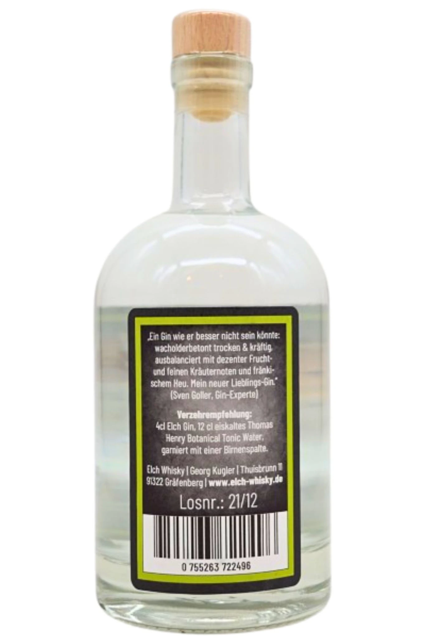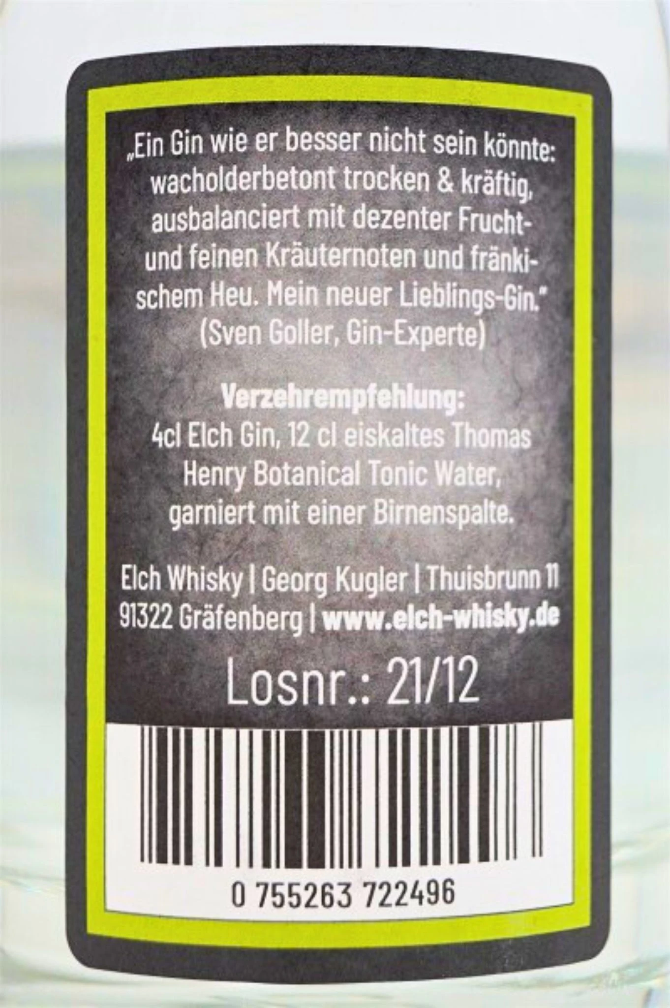 „Ein Gin wie er besser nicht sein könnnte: wacholderbetont trocken und krfätig, ausbalanciert mit dezenter Frucht-und feiner Kräuternote und Fränkischem Heu. Mein neuer Lieblings Gin“