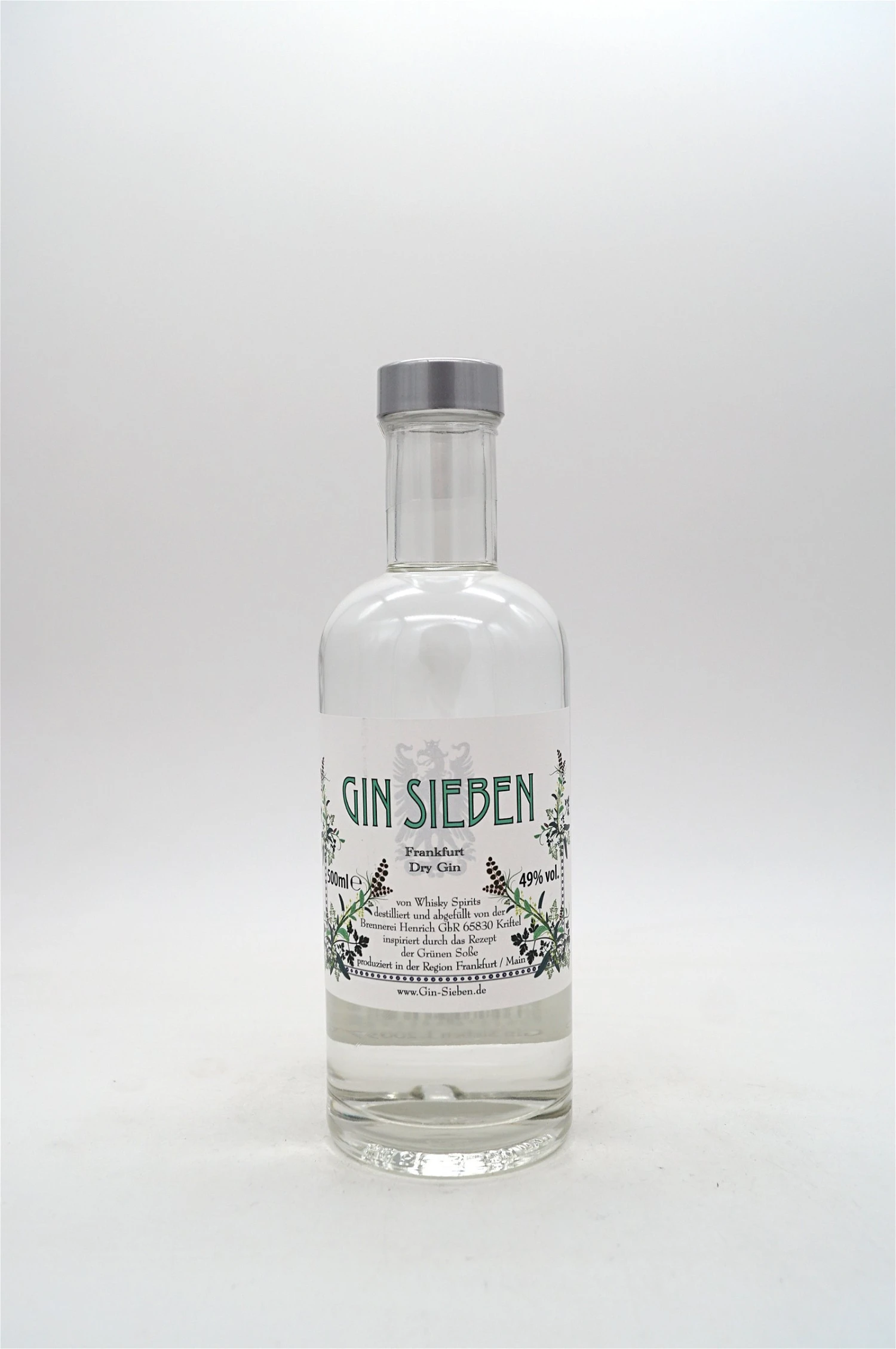 Gin Sieben verbindet auf kongeniale Weise seine Herkunft, die Mainmetropole mit dem traditionellen Frankfurter Rezept der Grünen Soße oder „Grie Soß“, wie der Frankfurter sagt. Der Schlüssel zur Komposition von Gin Sieben ist neben dem obligatorischen Wacholder die Kräutermischung: Boretsch, Kerbel, Kresse, Petersilie, Pimpinelle, Sauerampfer und Schnittlauch.