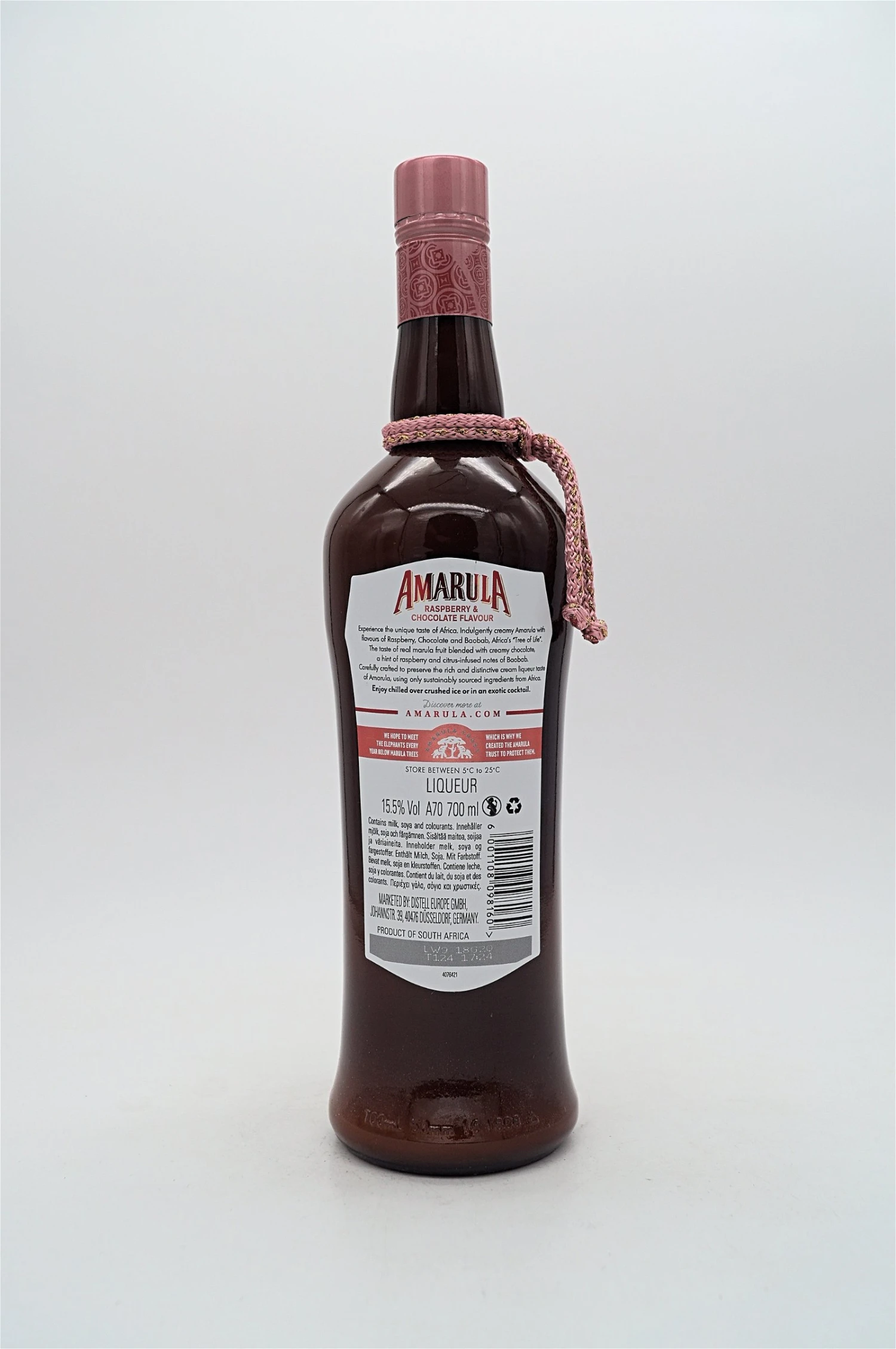 Amarula Raspberry, Chocolate & African Baobab wird ausschließlich aus nachhaltigen Zutaten aus Afrika hergestellt. Er verbindet Himbeere, cremige Schokolade, die Marula-Frucht und eine feine Zitrusnote der Baobab-Frucht. Auch ein leichtes Aroma von Karamell und türkischem Honig können vernommen werden. Das Ergebnis ist ein vollmundiger, duftender und geschmackvoller Cream-Likör.