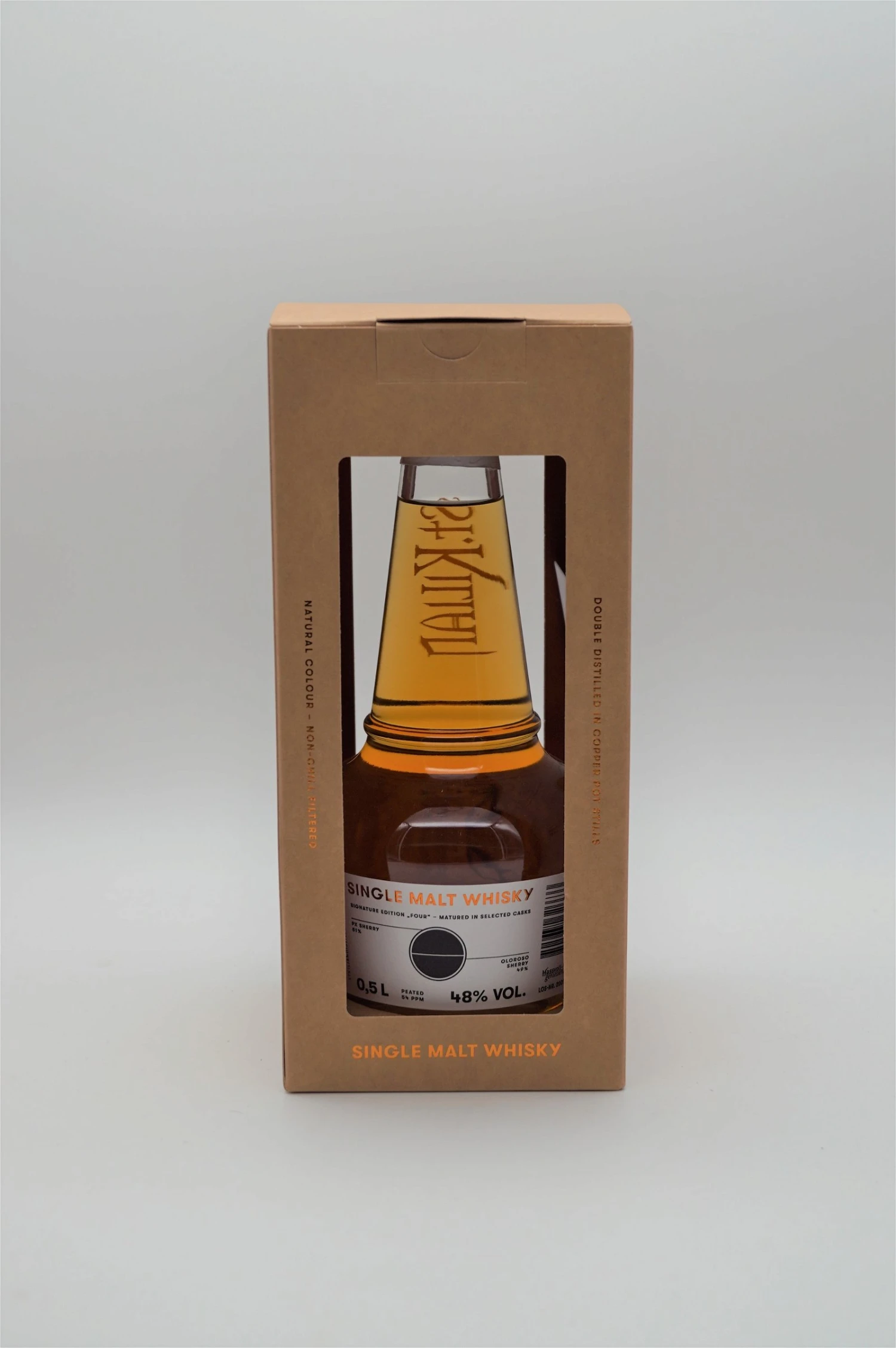 Der Grund für die „Force“ im Four: spanisches Temperament trifft auf schottische Whiskytradition. Seinen fruchtig-würzigen Charakter verleihen dem „Four“ ausgewählte Sherry-Fässer aus Andalusien. Reifen durfte der Single Malt Whisky je zur Hälfte in ausgewählten ehemaligen Oloroso Barrels und Pedro-Ximénez-Fässern. Gebrannt mit reinem Rauchmalz aus Schottland mit einem Phenolgehalt von 54 ppm.