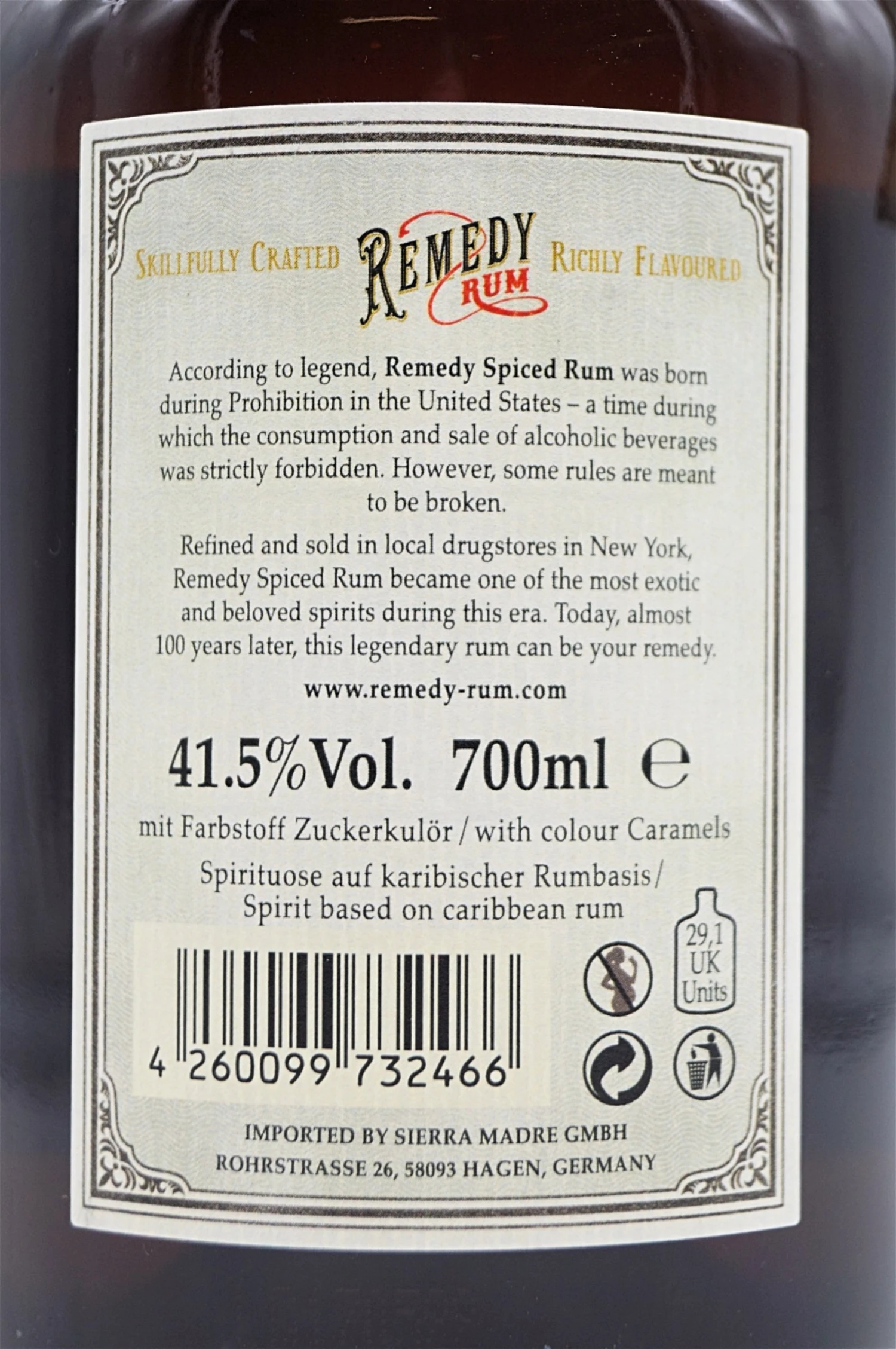 Remedy Spiced Rum ist ein feiner Blend, hergestellt aus karibischen Rums der Länder Trinidad & Tobago, Barbados und der Dominikanischen Republik. Diesem Blend werden feinste Gewürze wie Vanille, Orangenschalen und Zimt hinzugegeben, um einen charaktervollen, facettenreichen Spiced Rum zu kreieren.