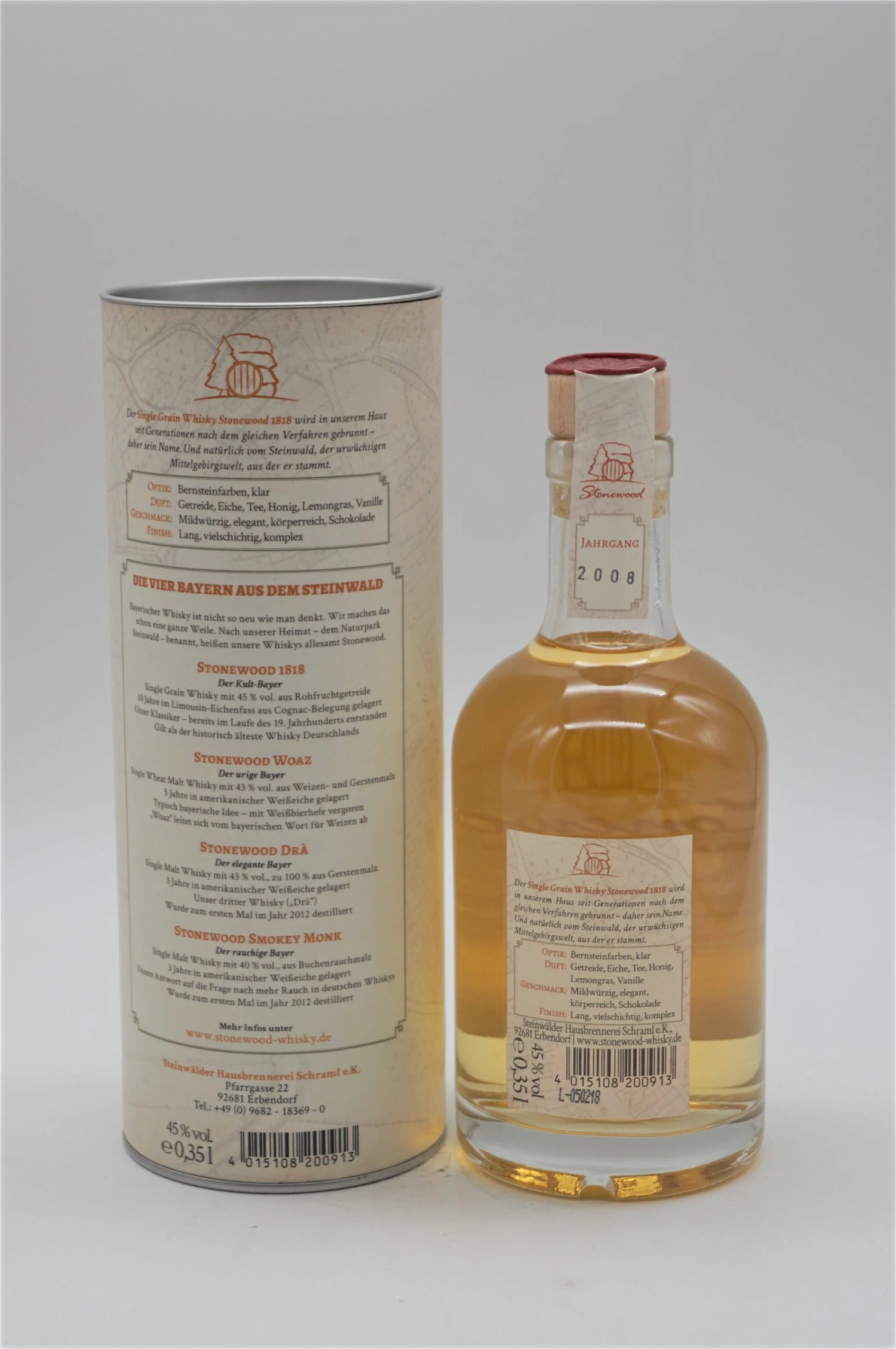 Der Single Grain Whisky Stonewood 1818 wird in unserem Haus seit Generationen nach dem gleichen Verfahren gebrannt – daher sein Name. Und natürlich vom Steinwald, der urwüchsigen Mittelgebirgswelt, aus der er stammt.
