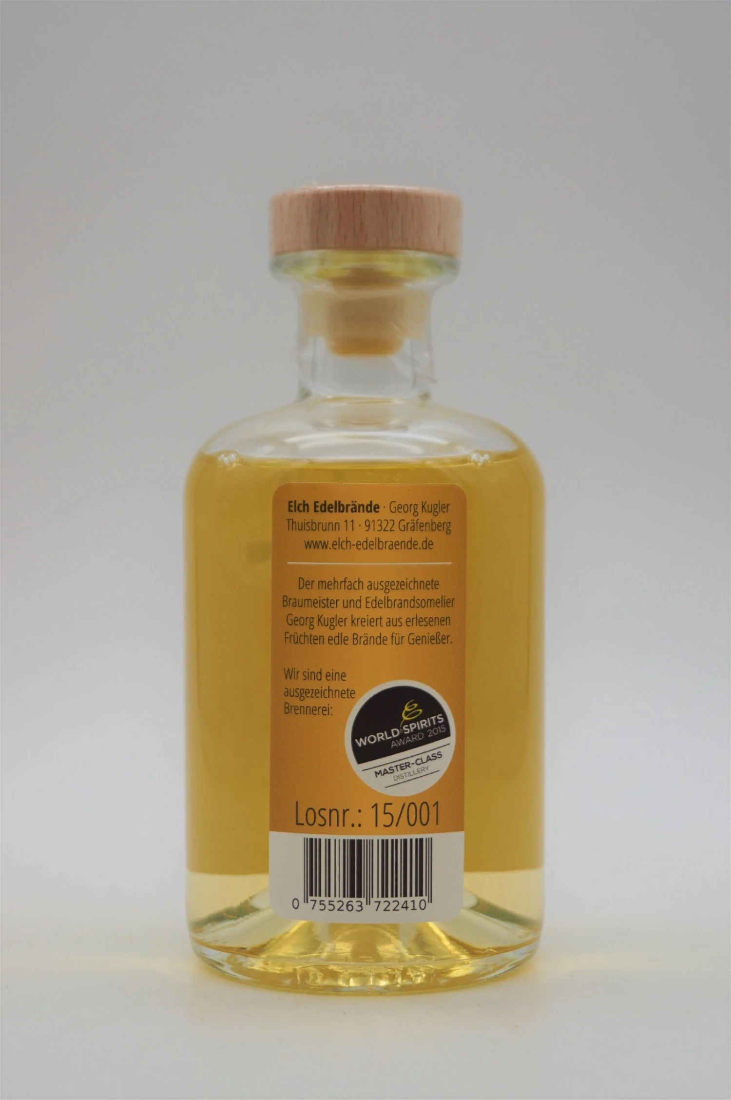 In der Brennerei in Thuisbrunn entsteht unter der Führung des vielfach ausgezeichneten Braumeisters und Edelbrandsomeliers Georg Kugler ein fränkischer Single Malt Whisky aus besten Zutaten. Charakteristisch für diesen Whisky sind die rauchigen Aromen, die sich durch das extra für Sie hergestellte Malz entfaltet. Erstmals wurde Malz mit deutschem Torf (ppm 32) geräuchert, um eine einzigartige Whisky-Spezialität zu erschaffen. Der spezielle und ausgefallene Geschmack macht viele Kenner der Branche auf Sie aufmerksam.